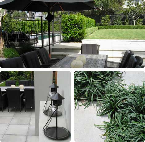 Broad steps lead from the terrace to a large level lawn and a family pool and spa. Generous planting softens built structures and provides enticing views from within.